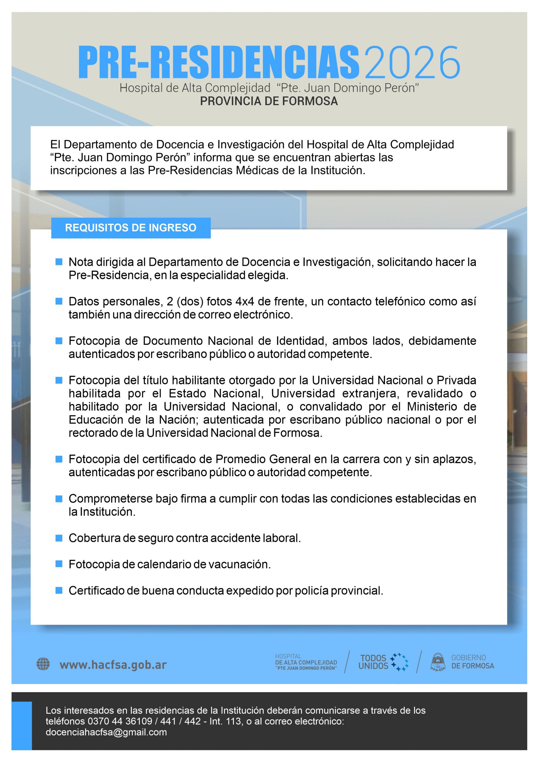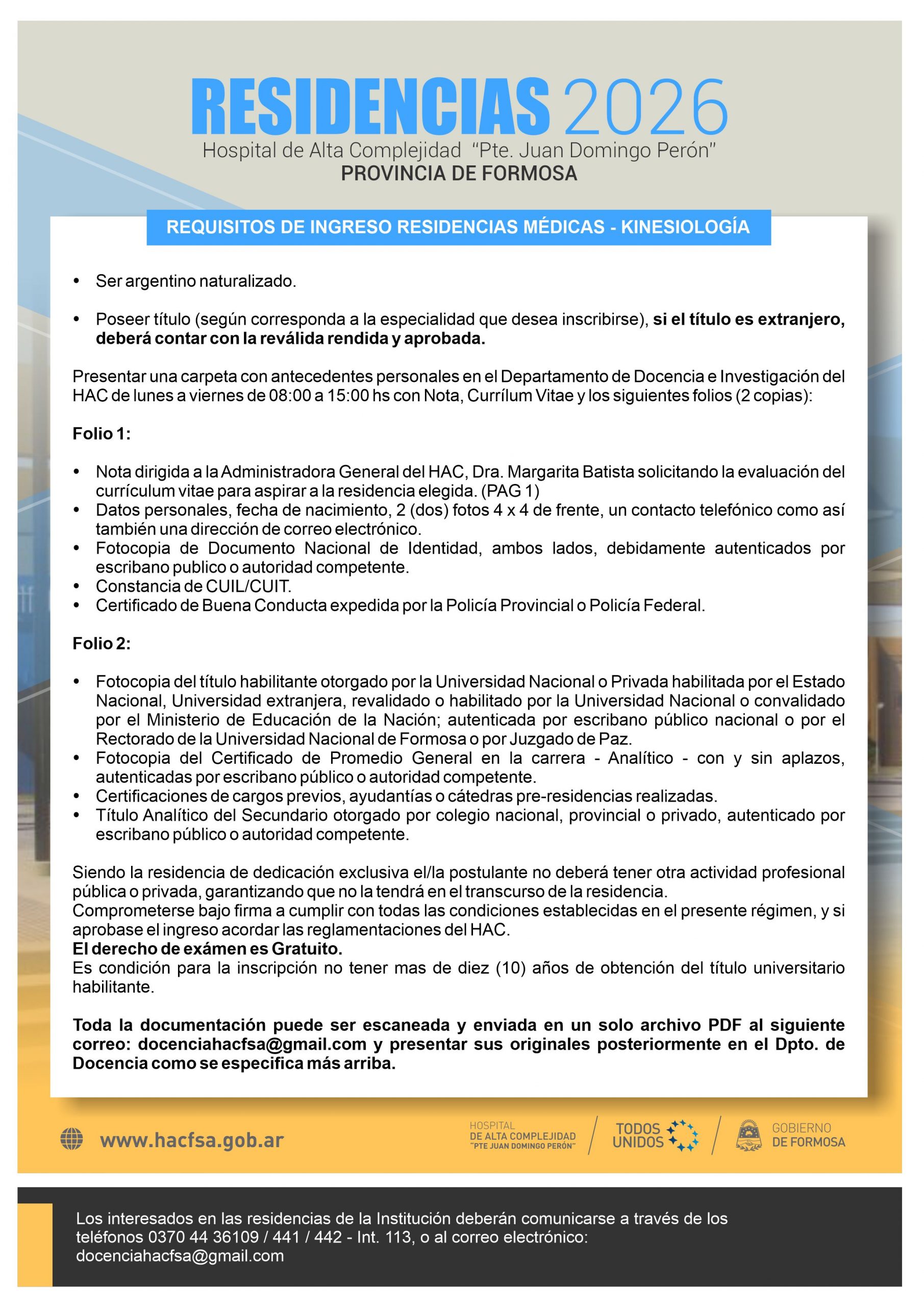 Comunícate con nosotros a través de los teléfonos +54 03704 4436 109/ 441/442 – int 113, o al correo electrónico: hac.docenciaeinvestigacion@formosa.gob.ar